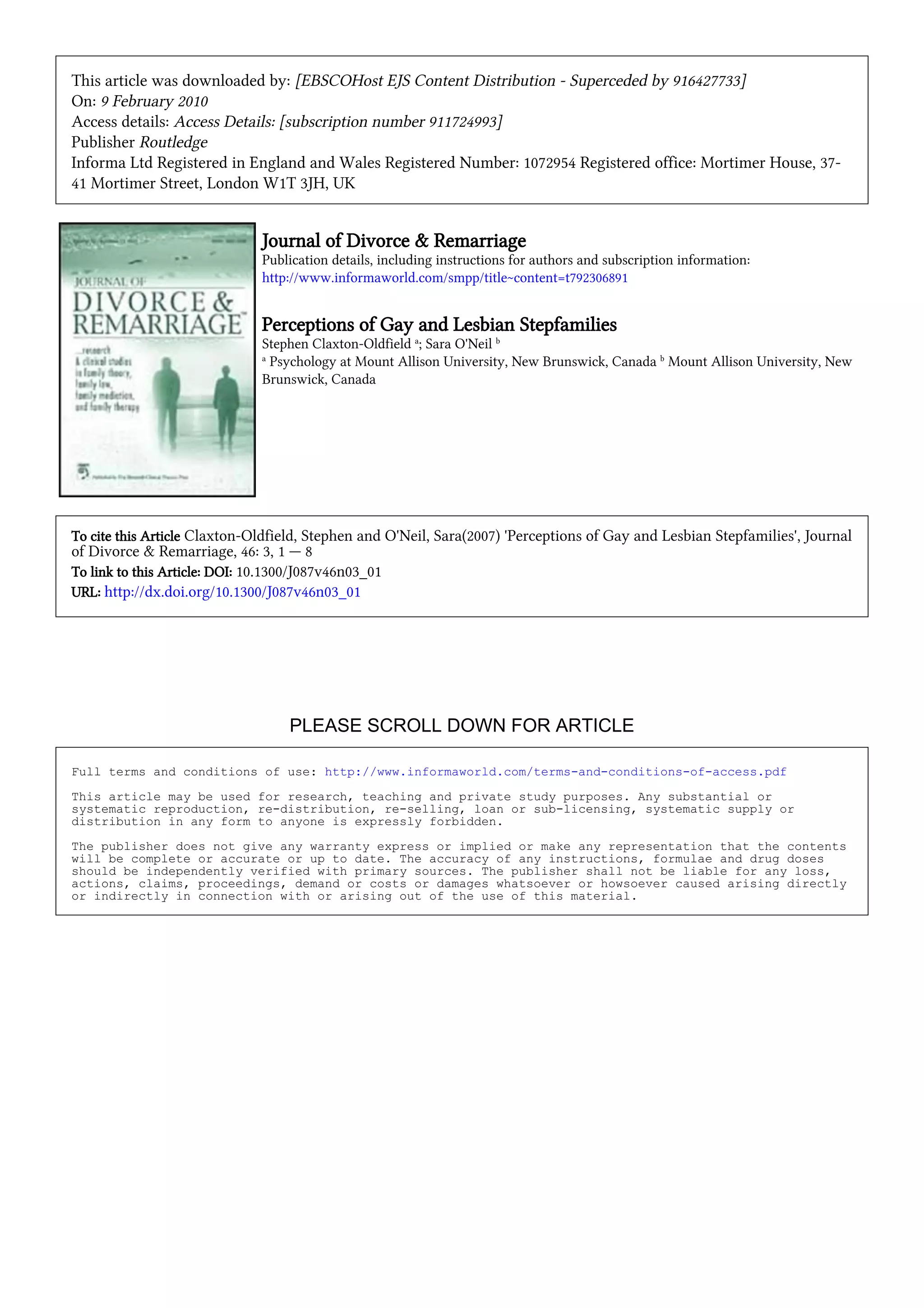 This study examined perceptions of different family types, including gay stepfamilies, lesbian stepfamilies, heterosexual stepfamilies, and biological families. Undergraduate students read brief descriptions of these family types and rated them using a questionnaire. The results found that biological families were perceived as less active than the other family types. Biological families were also seen as more stable than heterosexual stepfamilies. Additionally, lesbian stepfamilies were rated as more satisfying/secure than heterosexual stepfamilies. The study provides insight into perceptions of diverse family structures.