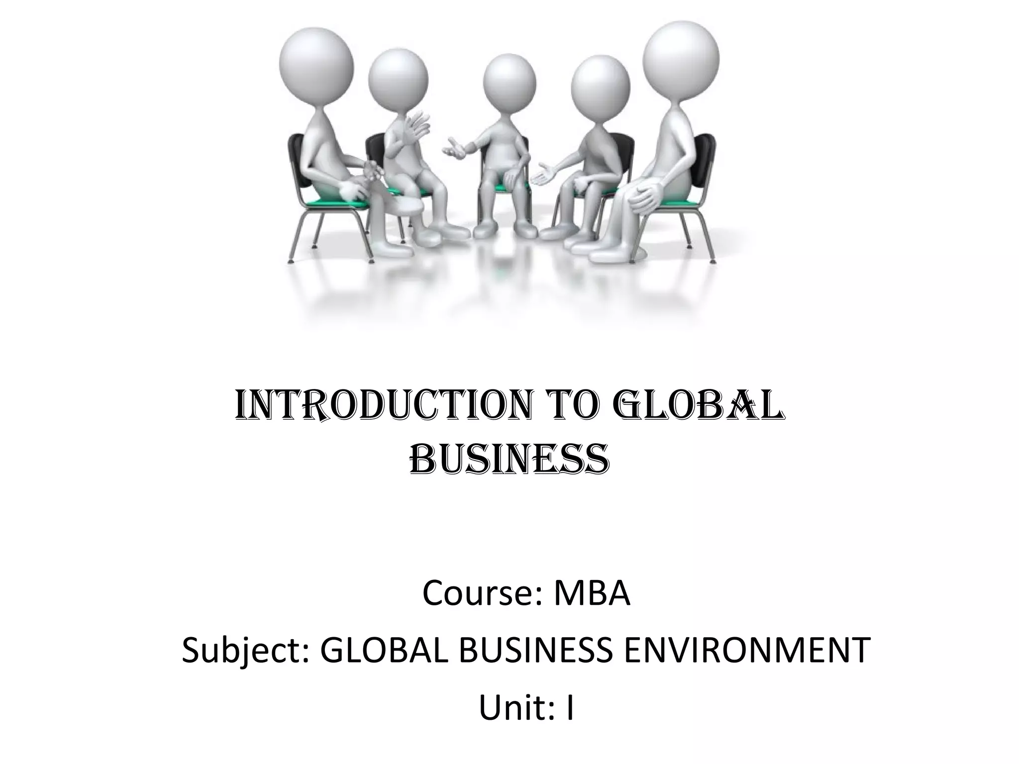 The document provides an overview of global business and internationalization. It defines key terms like globalization and discusses the various drivers and origins of international business, including reasons companies go international in either a reactive or proactive manner. The document also examines restraints to globalization and outlines different levels of international orientation from ethnocentric to polycentric perspectives.