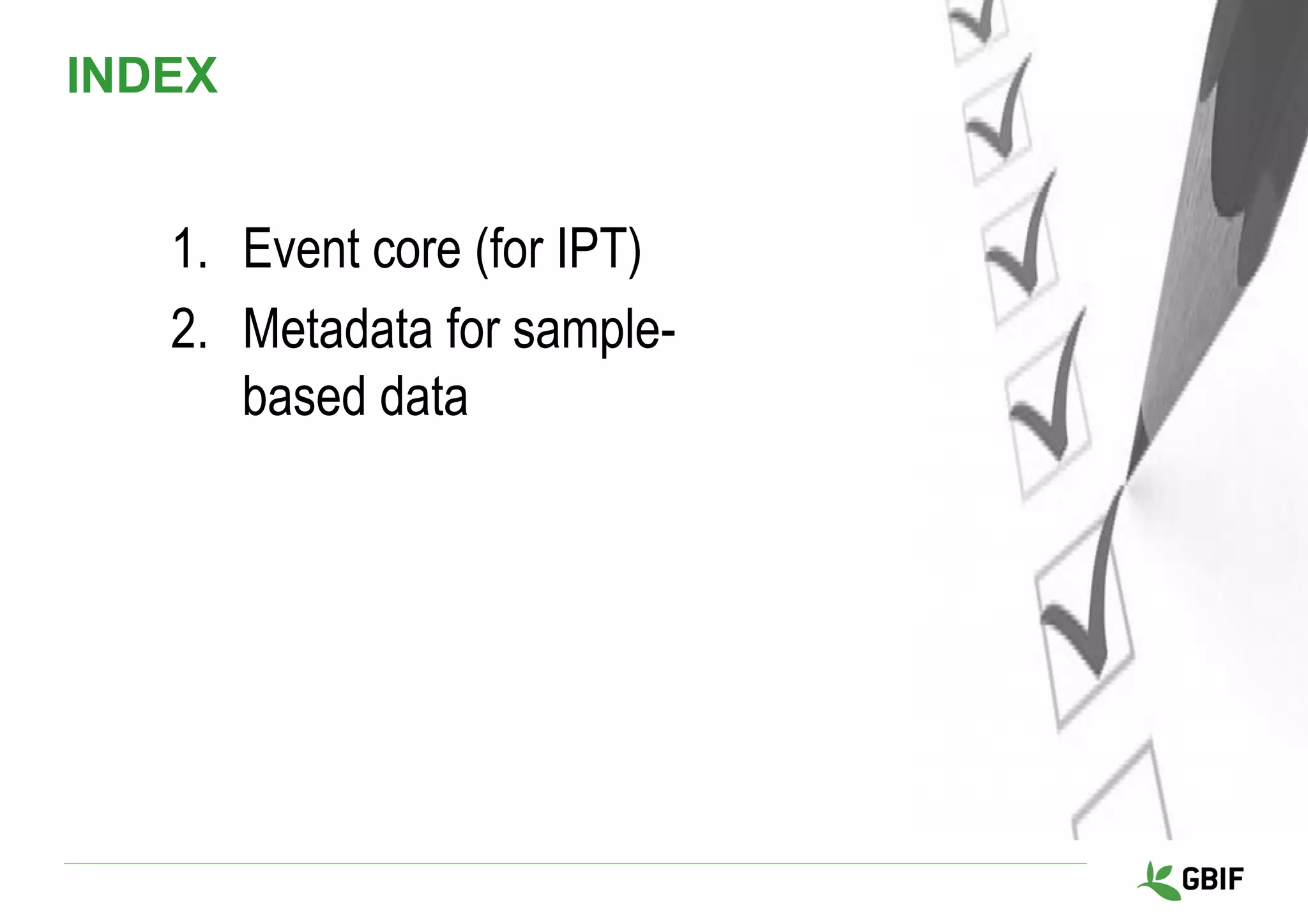 The document discusses the event core and metadata for sample-based data publishing, detailing new terms and features such as event IDs, sample sizes, and organism quantities. It emphasizes the importance of metadata in documenting sampling methods and data quality for effective data usage. Additionally, it outlines various examples of sampling descriptions and quality control actions critical for maintaining the integrity of data collected in ecological studies.