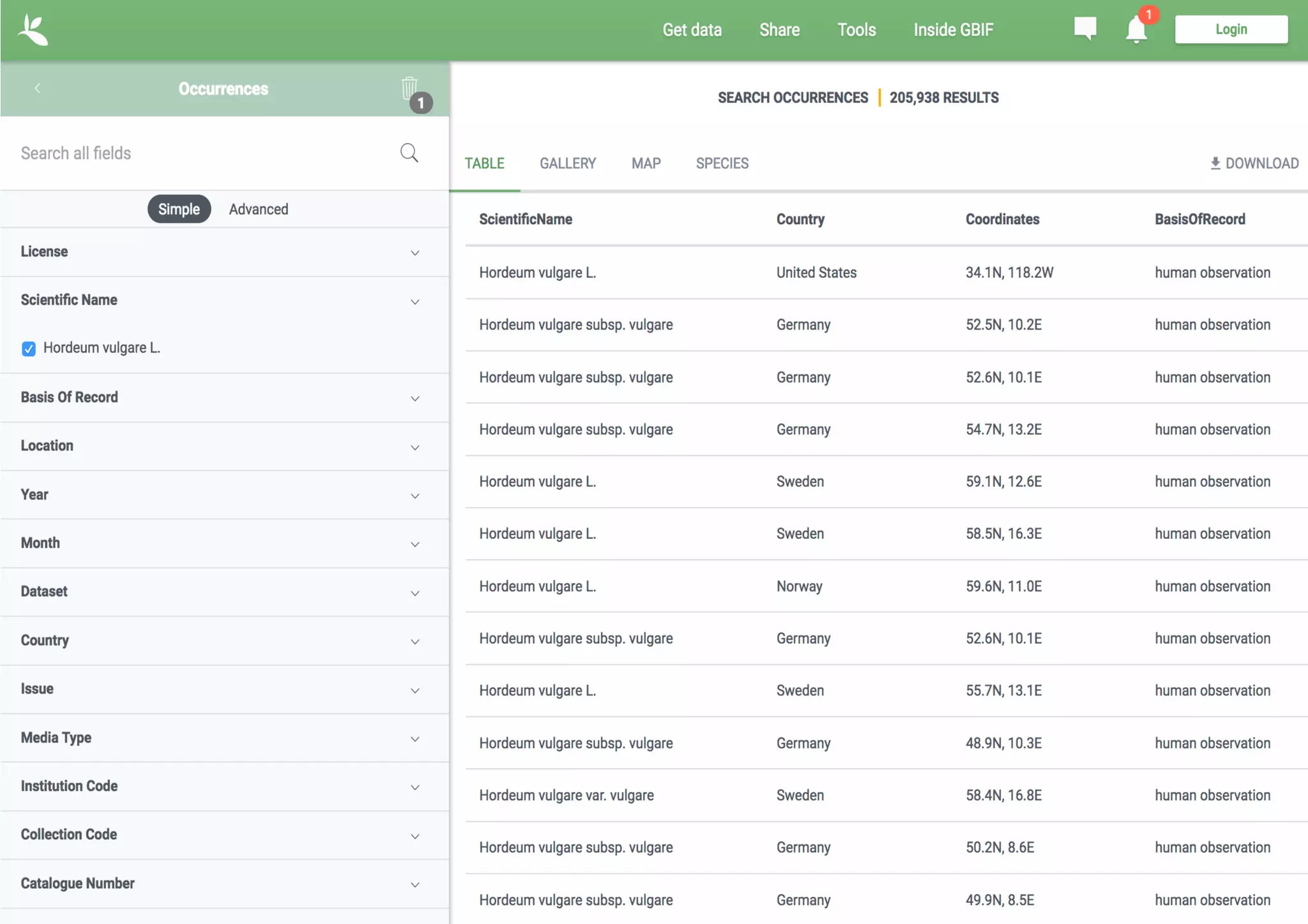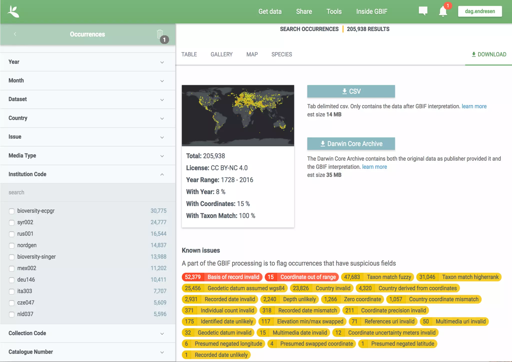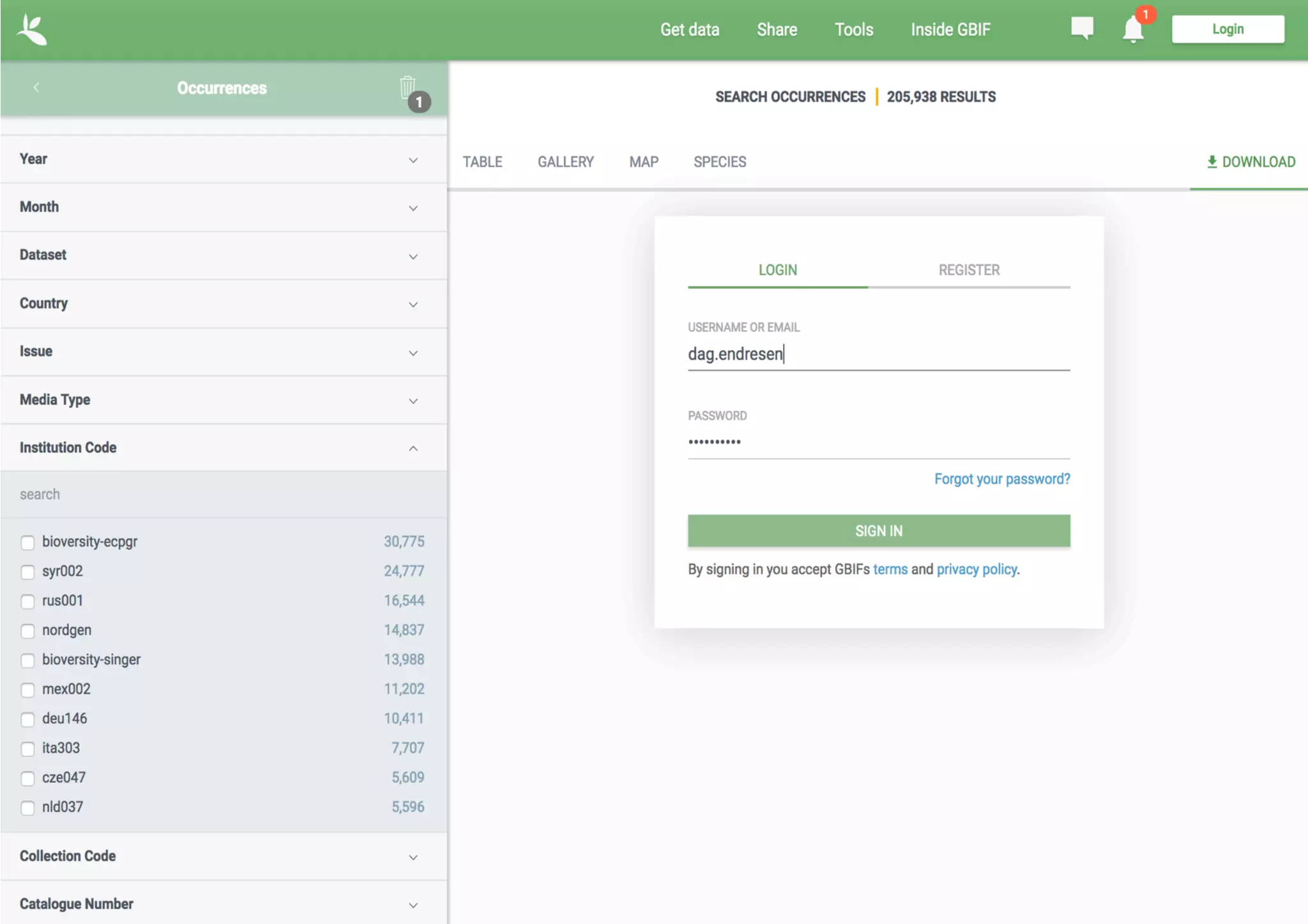The document discusses the Global Biodiversity Information Facility (GBIF) data portal and its significance in biodiversity research and policy, highlighting data availability and usage statistics across various countries. It outlines the infrastructure provided by GBIF for data publishing and discovery, along with examples of research benefiting from GBIF-mediated data. Additionally, it emphasizes the importance of data citation, licenses, and the services available for data analysis and tracking impact.