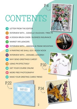 Gypsy Chic Magazine's Issue 8 (2016) features interviews with card artists and insights into the greeting card publishing industry, highlighting topics such as PR, marketing strategies, and entrepreneurship. Contributors discuss the balance between creative design and business acumen, sharing personal experiences and practical advice for success. The issue encourages readers to embrace new opportunities and continually adapt in a competitive market.