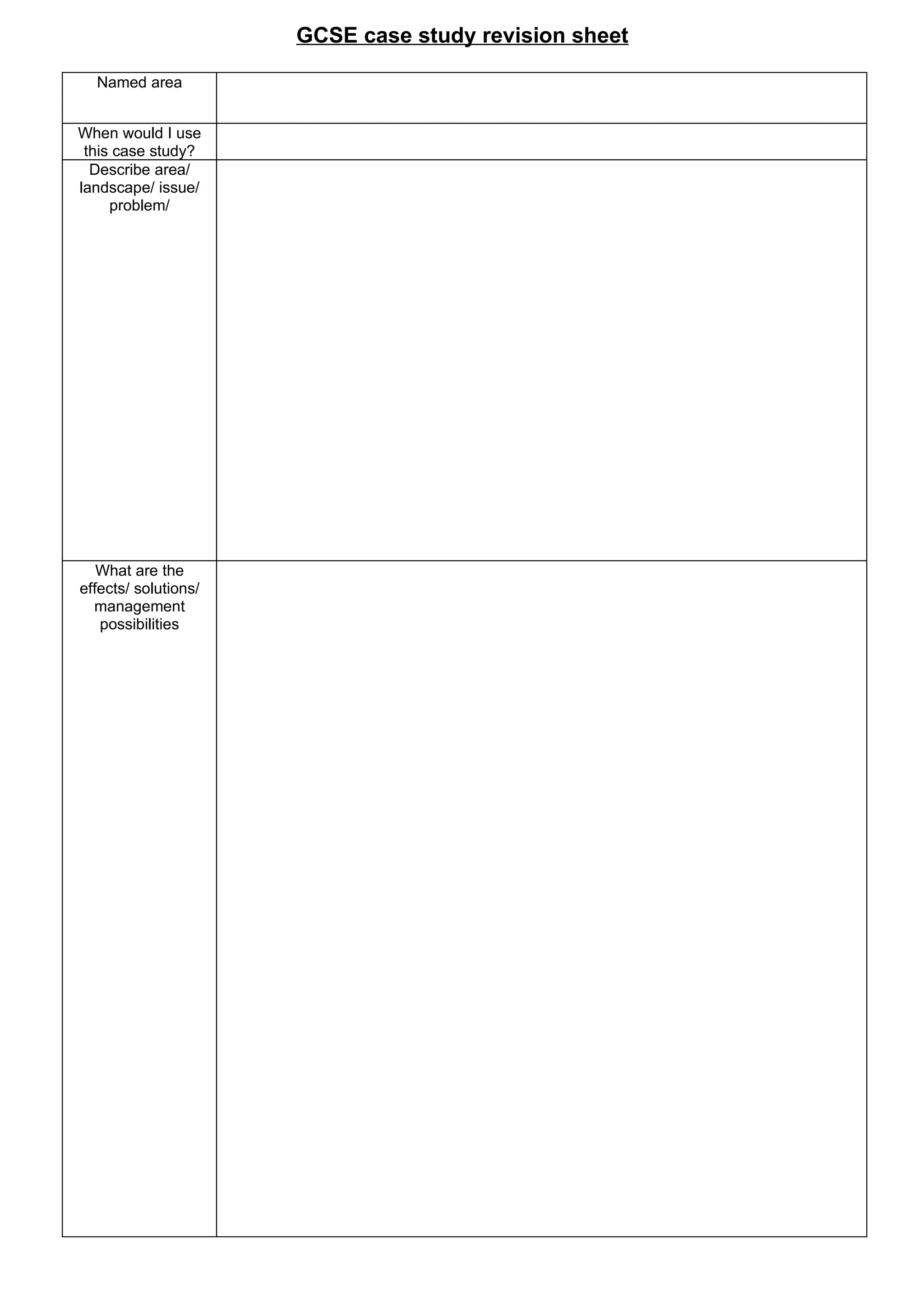 Gcse Case Study Revision Sheet 1. GCSE case study revision sheet