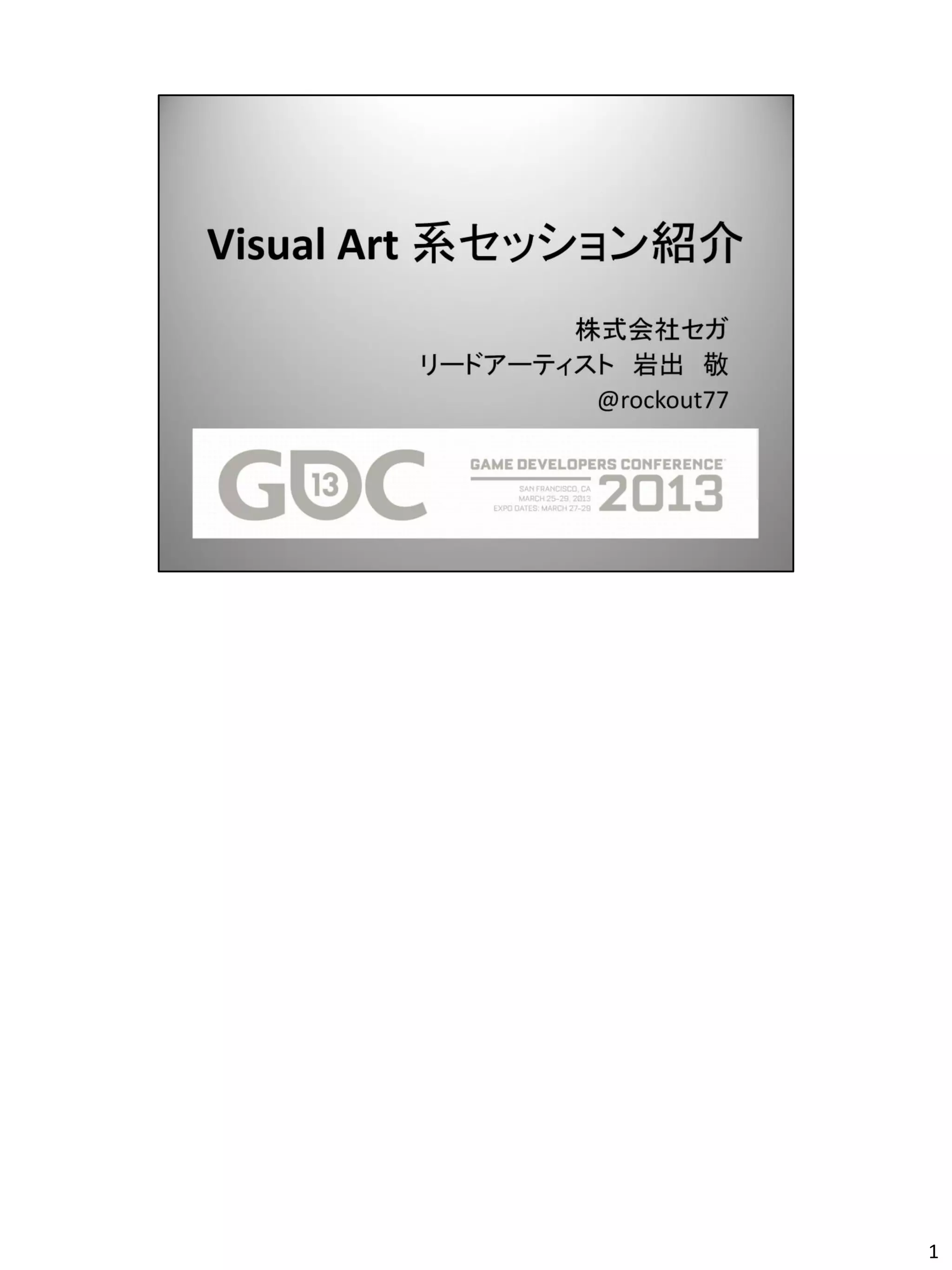 2013/4/13 に行われたIGDA日本GDC2013報告会 http://www.igda.jp/modules/bulletin/index.php?page=article&storyid=976 における岩出枠Visual Art系セッション報告スライドになります