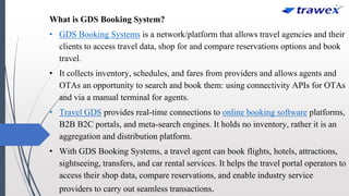 GDS booking systems are platforms that enable travel agencies to access and book travel data such as flights, hotels, and car rentals, facilitating seamless transactions among providers and agents. Major systems include Amadeus, Sabre, and Galileo, each offering unique functionalities and data integration capabilities. These systems enhance the efficiency of travel bookings by providing real-time pricing, inventory control, and a vast array of services for both agents and consumers.