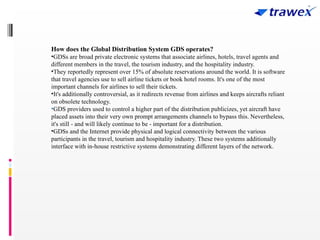 Trawex, one of the leading travel portal development companies that can help you set up the right presence of webpage. GDS providers used to control a higher part of the distribution publicizes, yet aircraft have placed assets into their very own prompt arrangements channels to bypass this. Nevertheless, it's still - and will likely continue to be - important for a distribution. This exhaustive and complex amazingly dependable, and generally low costs set of systems gives the travel, the travel industry and hospitality ventures with a very powerful and productive system for processing sales transactions, managing inventory and interfacing with revenue management systems. For more details, Pls visit our website: https://www.trawex.com/gds-system.php