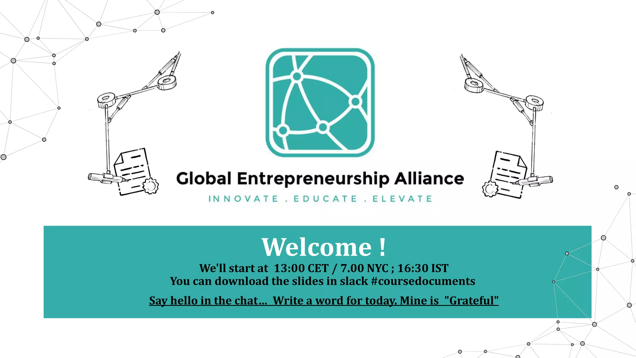 This document provides an agenda and overview for a 5-day online entrepreneurship education workshop. Participants will work in groups to address challenges in entrepreneurship education. Each day will include introductions, learning sessions, breakout group work, and delivering a daily task. Tools like Zoom, Mural, and Slack will be used to foster interaction and collaboration between remote participants. The goal is to generate ideas to solve big challenges like integrating entrepreneurship education into core curriculums and making programs scalable worldwide.