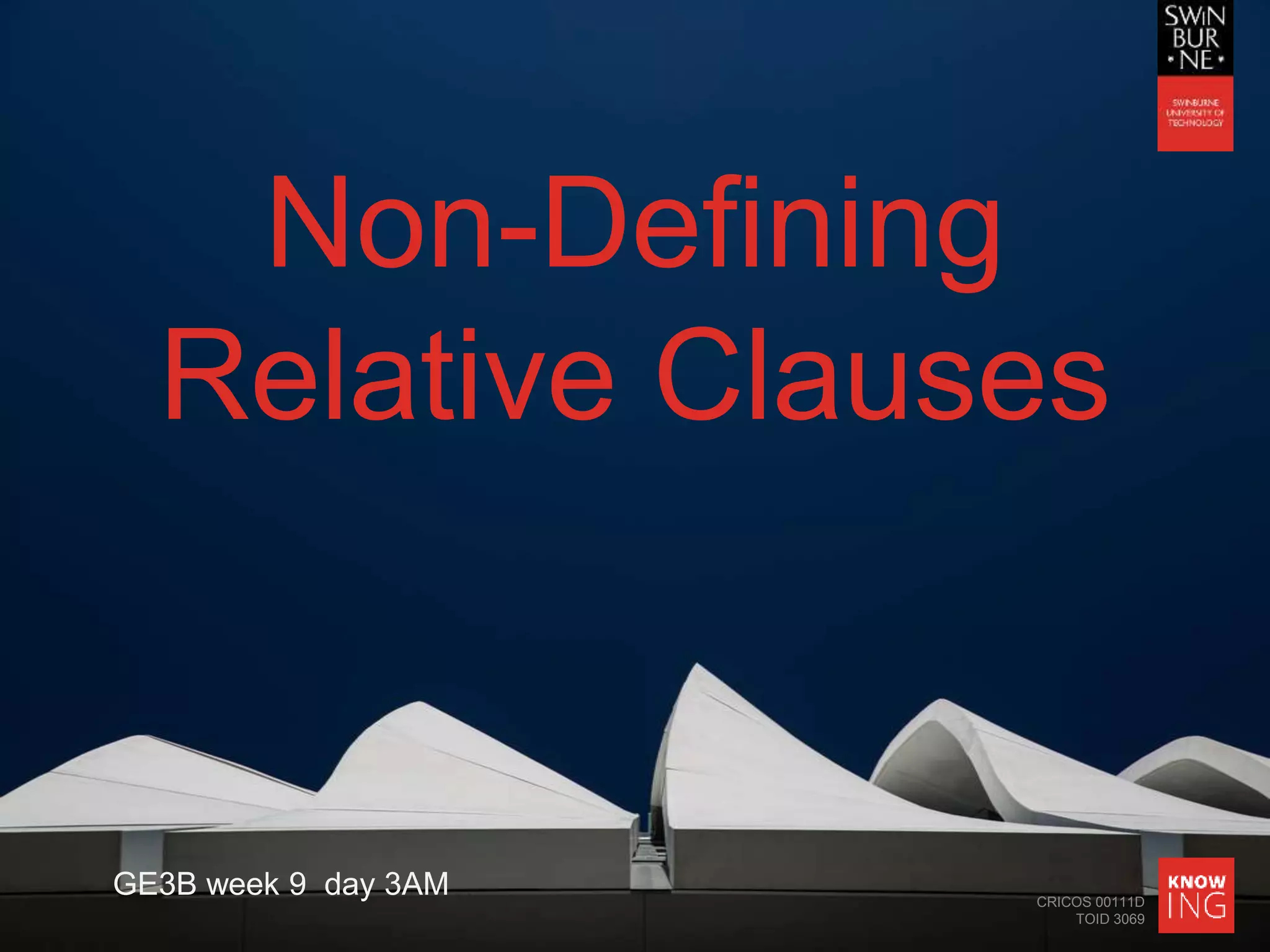 The document discusses different types of relative clauses, specifically non-defining relative clauses. It provides examples of non-defining relative clauses using who, which, whose, whom, and where. It explains that non-defining relative clauses provide extra information separated by commas, while defining relative clauses identify the antecedent. The document also gives examples of combining sentences using non-defining relative clauses with who and which.