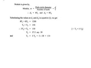 Gear trains are combinations of wheels that transmit motion from one shaft to another. There are several types of gear trains including simple, compound, epicyclic, and reverted gear trains. A simple gear train contains one gear on each shaft connected by meshing teeth. An epicyclic or planetary gear train contains one or more outer gears that rotate around a central gear. Gear trains can be used to increase or decrease shaft speed and rotate shafts in the same or opposite directions depending on the train value.