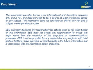 EEB is a regional leader in the energy sector with operations in Colombia, Peru, and Guatemala. It has majority ownership of companies involved in electricity transmission and distribution, natural gas transportation and distribution, and electricity generation. EEB has pursued a strategy of growth through controlled subsidiaries and expanding infrastructure. It has a strong financial position with stable revenues from regulated businesses comprising 81% of its income. EEB has ambitious capital investment projects underway totaling over $7.5 billion from 2013-2017 to further consolidate its leadership position across its operations.