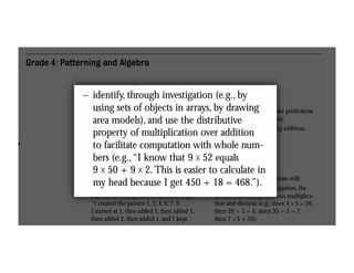 The document outlines the agenda for school math learning teams, emphasizing the importance of mathematical vision and proficiency development from K-10. It highlights the necessity for educators to engage students through collaboration, inquiry, and problem-solving while fostering a positive attitude towards mathematics. Additionally, it discusses foundational skills in early mathematics, the role of the math learning team, and the characteristics of effective math education.