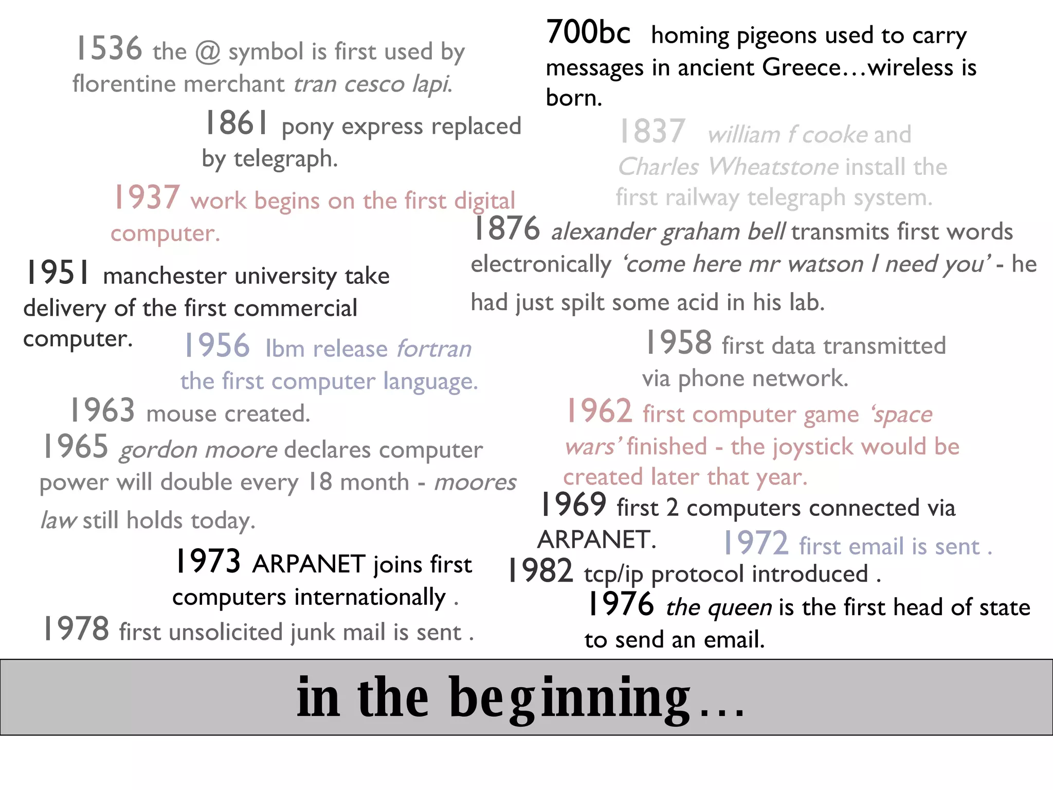 The document provides a comprehensive timeline of the history of the internet from ancient communication methods to the emergence of Web 2.0. It highlights significant milestones, such as the invention of the telegraph, the first email, and the rise of social networking and open-source technologies. Current trends and predictions for the future of the internet, including data portability and predictive search engines, are also discussed.