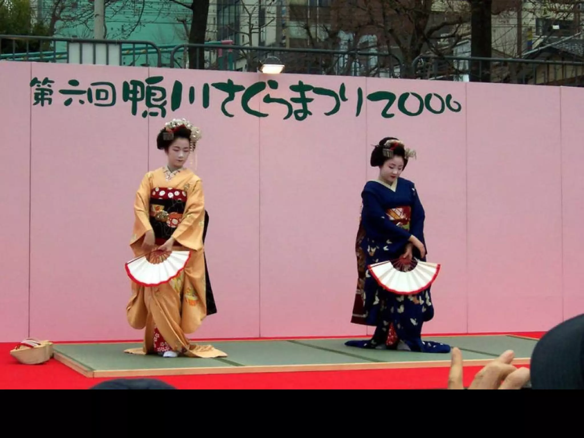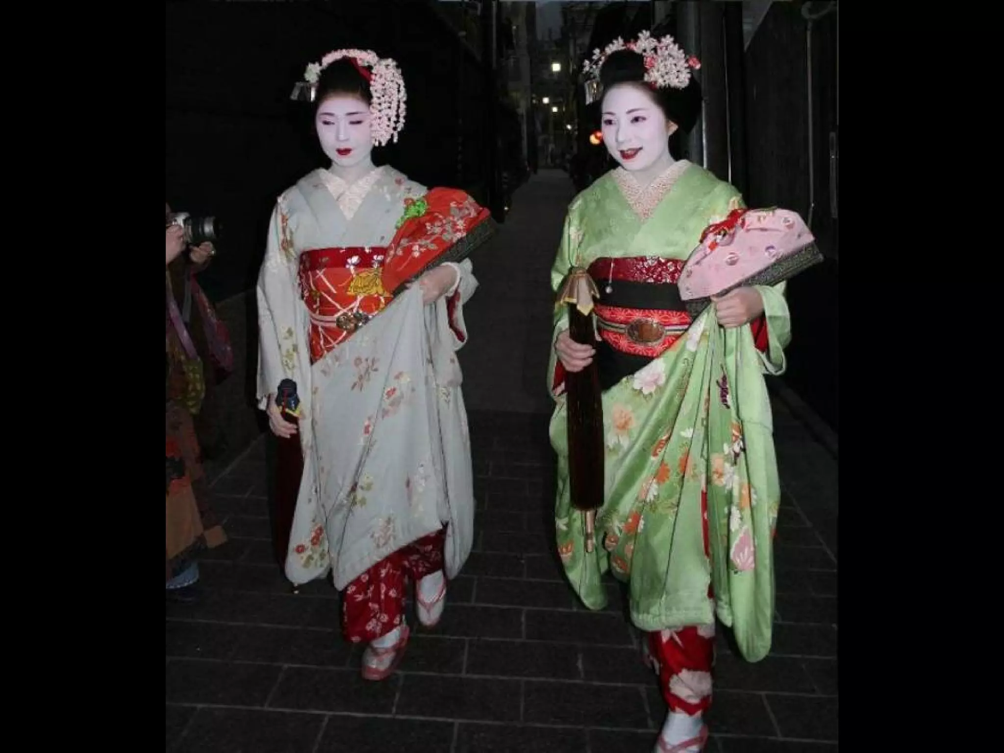 Geisha are female entertainers in Japan who are trained in classical Japanese arts such as music, dance, games, and conversation. They perform various arts for clients and at cultural events and festivals. Geisha are seen as celebrities who are part of the cultural scene, posing for tourists and riding in rickshaws in cities like Kyoto. The document discusses geisha and their role as entertainers through classical Japanese performances.