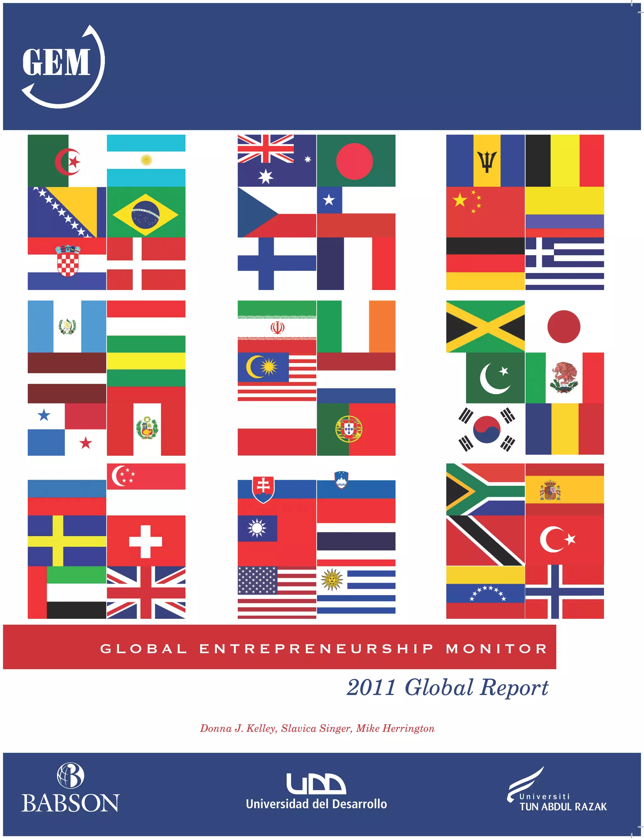 The document analyzes data from the 2011 Global Entrepreneurship Monitor survey of over 140,000 adults in 54 economies. It finds: