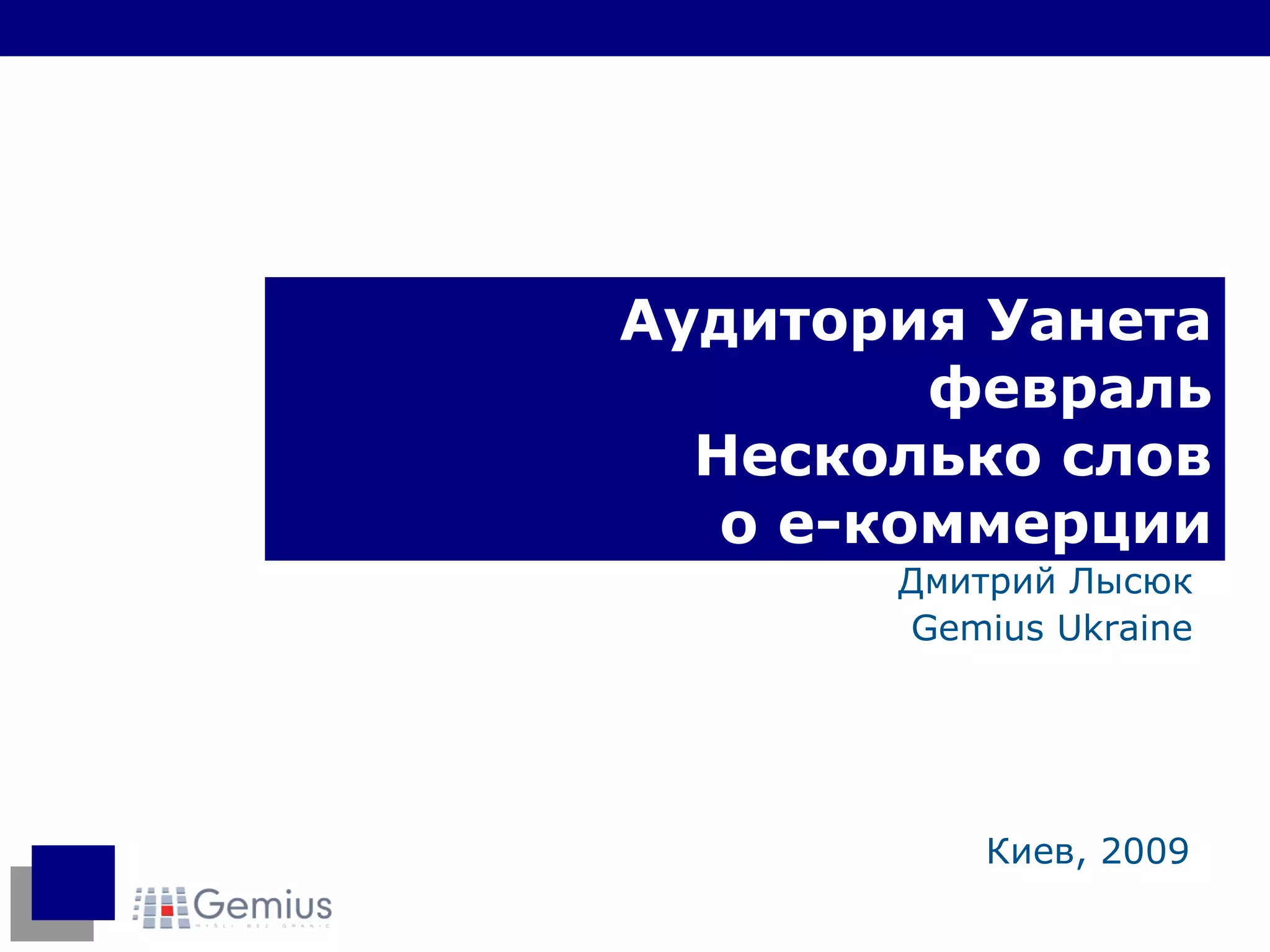 Документ предоставляет данные о состоянии интернет-аудитории Украины в феврале 2009 года, включая 7,09 млн пользователей и прирост в 1,55 млн по сравнению с 2008 годом. Исследования Gemius указывают на высокую активность пользователей, особенно в Киеве и ключевых регионах, с акцентом на рост e-коммерции, где 31% пользователей совершали онлайн-покупки. Наиболее востребованные товары включают бытовую технику и электронику, в то время как менее популярны компьютерные игры и профессиональная техника.