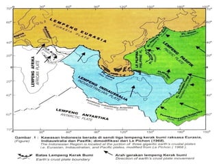 Gempa bumi adalah getaran di permukaan bumi akibat gerakan dalam bumi, yang dapat disebabkan oleh aktivitas vulkanik, pergeseran lempeng tektonik, atau runtuhan. Pusat gempa di dalam bumi disebut hiposentrum, sementara titik di permukaan yang langsung di atasnya disebut episentrum. Jenis-jenis gempa ini memiliki dampak yang berbeda tergantung pada penyebabnya.