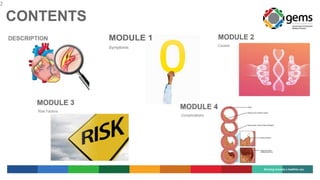Cholesterol is essential for the body's functions but too much can increase heart disease risk. There are two types - LDL or "bad" cholesterol which raises risk when too high, and HDL or "good" cholesterol which helps remove LDL. High cholesterol can be inherited but is often caused by unhealthy lifestyle choices like diet and exercise habits, making it preventable and treatable through diet, exercise, and sometimes medication.