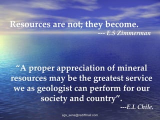This document provides an overview of gemological sciences and geology as it relates to gemstones. It discusses the classification, properties, formation environments, exploration, and valuation of gemstones. Key points covered include the 4Cs of valuation (color, clarity, cut, carat), the role of geologists in prospecting deposits and identifying stones, and examples of gemstone varieties such as beryl and a case study of emerald deposits in Zambia.
