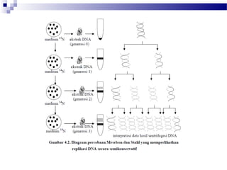 2. Replikasi DNA melibatkan enzim DNA polimerase yang mensintesis DNA baru berdasarkan cetakan DNA induk, membentuk DNA ganda.