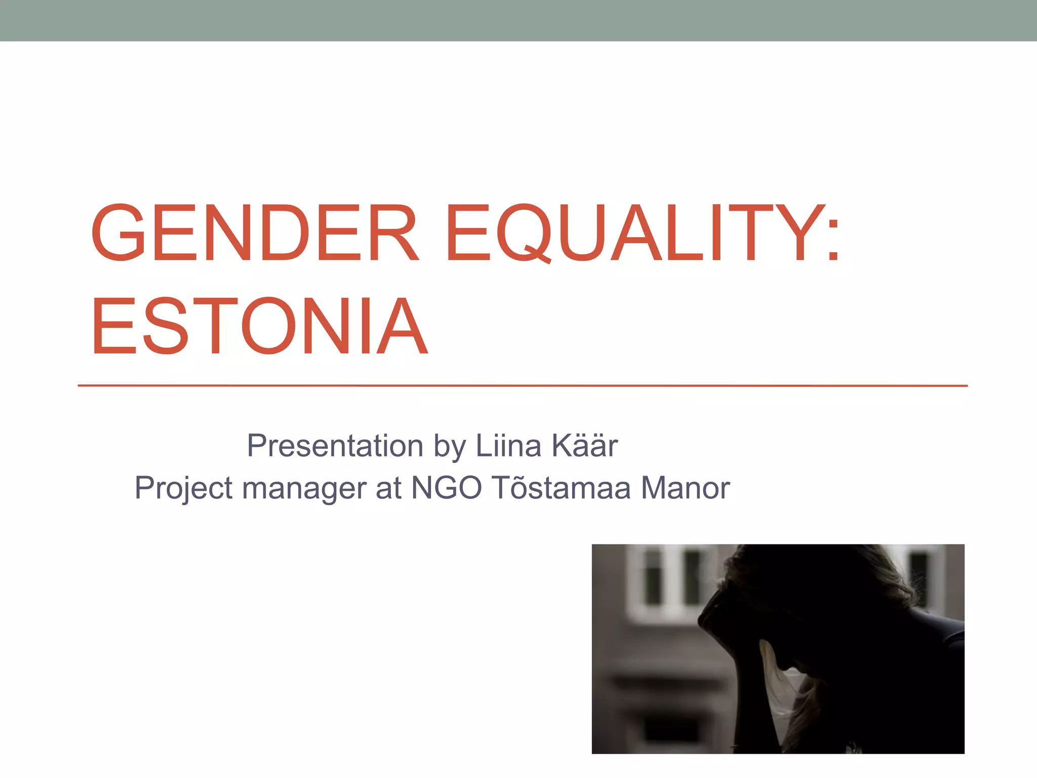Estonia has made some progress toward gender equality but still faces challenges, particularly in the areas of power and pay. On average, the country's equality index is 50 out of 100, compared to the European average of 54. Statistics show women earn approximately 30% less than men for the same jobs and positions. While health and work opportunities are more equal, only 27.5% of powerful positions are held by women. Recent legal improvements established a gender equality commissioner and require impact analyses of new legislation. However, no overarching gender equality plan exists. A nonprofit organization promotes gender equality through cultural events like workshops and discussions.