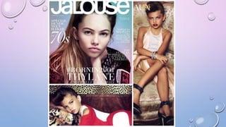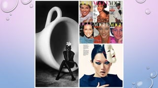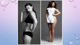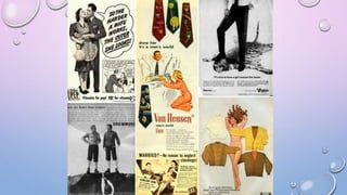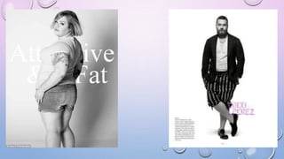 The document discusses various biases related to gender, race, age, and size that are present in the fashion industry. It notes that gender roles are often reinforced through fashion and clothing choices. While there has been more diversity in recent decades, the industry still underrepresents racial minorities, older models, and larger sizes. For example, in 2013 only 6% of models at New York Fashion Week were black and only 2% were Latina. The document also provides some historical context on the representation of different groups over time.
