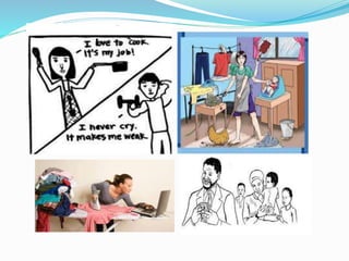 The document discusses gender sensitization and its importance in creating a more equitable society. It defines gender sensitization as raising awareness about gender equality and modifying behaviors to afford equal treatment and opportunities to men and women. The key aspects that need development for gender equality are more open-minded and unbiased thoughts, dismantling orthodox beliefs, and better work-life balance for both women and men. Schools and educators play an important role as agents of change, and gender sensitization training for teachers is recommended so they can help shape non-discriminatory attitudes in students from a young age.