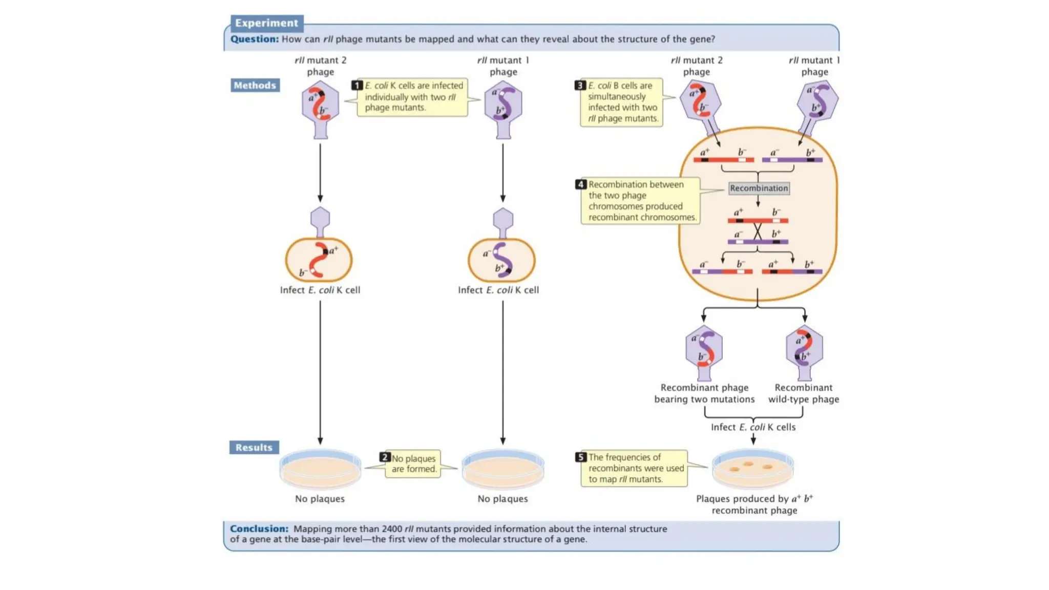 • Benzer used T4 bacteriophage and its rII mutants, which: