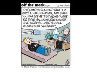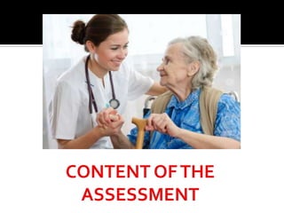The document provides guidance on conducting a comprehensive psychosocial assessment in psychiatric nursing. It discusses key areas to assess including mental status, mood, thought process and content, cognition, risk of harm, relationships, and functioning. The nurse is advised to establish rapport, use open-ended and nonjudgmental questions, and assess for symptoms, stressors, strengths and risks to develop an accurate understanding of the client's situation.