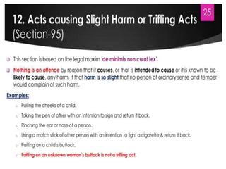 This document provides a 3 sentence summary of the document. The document is about general exceptions under the Indian Penal Code of 1860 written by Anjali Dixit, an assistant professor at the Faculty of Juridical Sciences at Rama University in Kanpur. It discusses exceptions to criminal liability under the Indian Penal Code and provides contact information for the author.