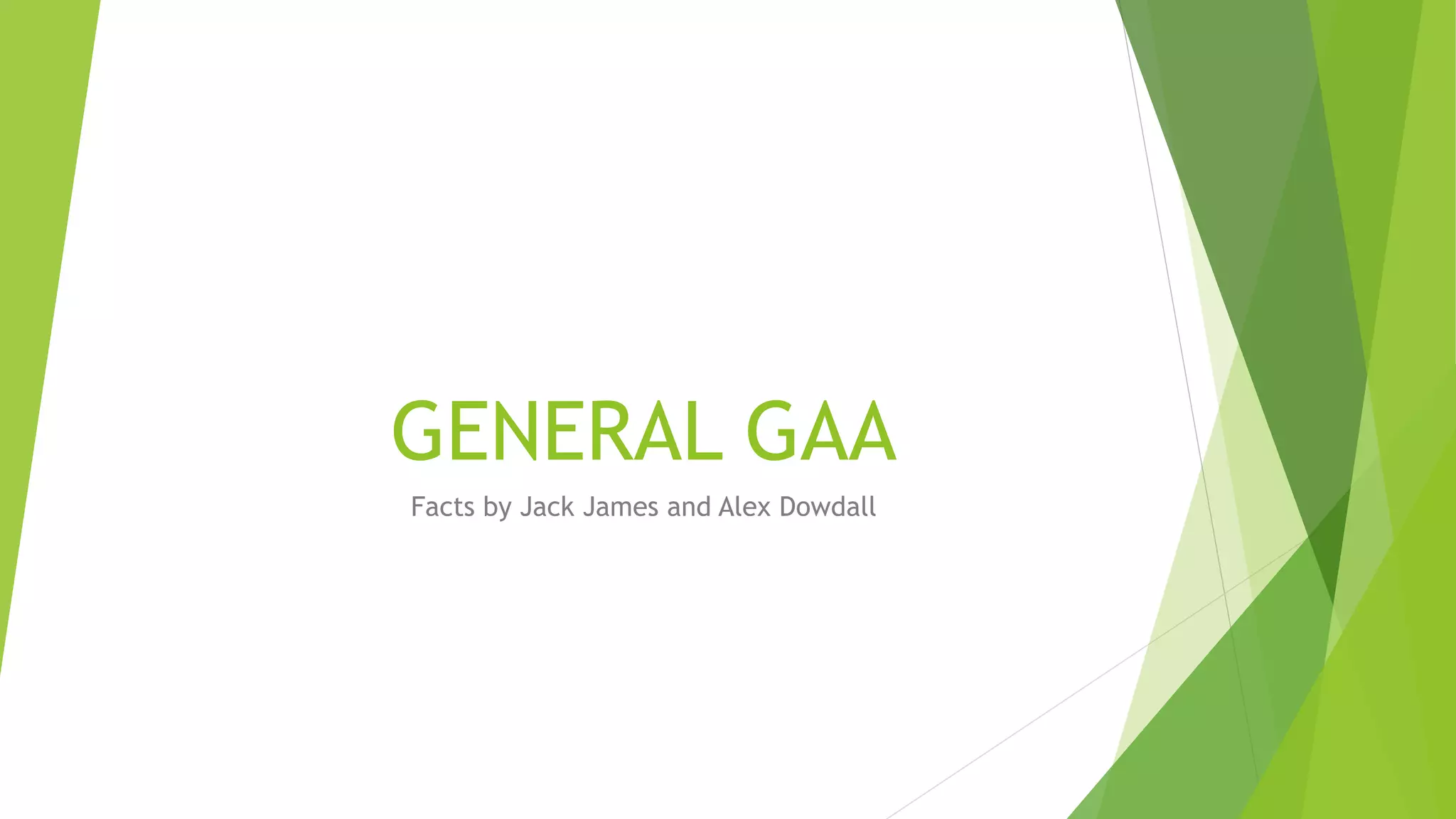The GAA was founded in 1884 in Thurles, Ireland by Michael Cusack. It is the governing body for traditional Irish games like hurling, Gaelic football, and camogie. The GAA has over 500,000 members across Ireland and more than 286 clubs. Some of the most important facts about the GAA are that its motto is "be there all the way", it owns Croke Park stadium, and it helped support the Easter Rising in the early 20th century. Gaelic football is played by teams of 15 on a grass pitch with H-shaped goals, where the objective is to score goals worth 3 points or score by kicking the ball over the crossbar worth 1 point. Hurling is considered