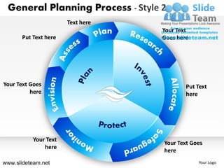 The document describes a general planning process style for presentations. It includes instructions for editing images and objects within PowerPoint slides by ungrouping objects and changing colors. The slides can be customized with user's own text and images to bring presentations to life and capture audience attention. All elements are fully editable to convey ideas convincingly.