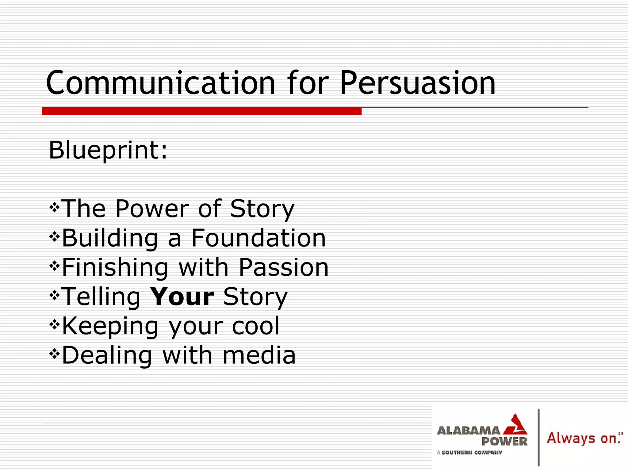 The document provides tips for effective storytelling and communication when trying to persuade others or deal with the media. It emphasizes the importance of having a strong foundation, structure, and finishing your story or message. It also stresses keeping your cool under pressure, controlling interviews, and staying on message with your key points.
