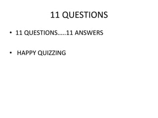This document contains a 11 question quiz covering topics like cities, movies, historical figures, and sports. The questions test knowledge about the largest city in Kazakhstan, actors and their movie roles, famous guns, celebrities who died in bathrooms, religious figures in the news, Olympic champions, movie titles, game show origins, early names for softball, and safety equipment introduced to boxing.