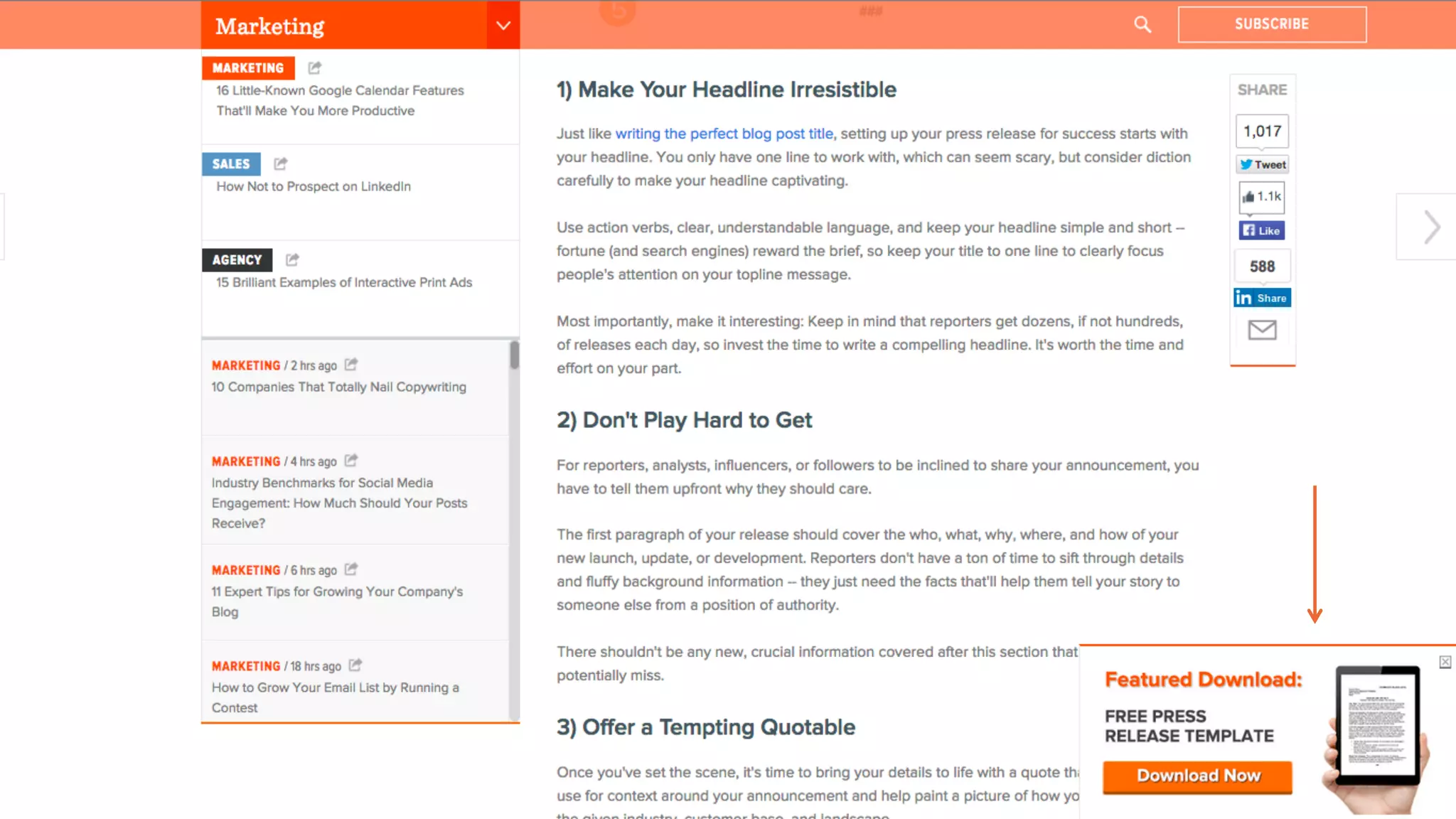 The document discusses optimizing blog content to generate traffic and conversions without publishing new posts. It provides tips for conducting a blog audit and analyzing top-performing historical posts to identify opportunities like incorporating relevant keywords into calls-to-action and creating new offers. Testing approaches like adding end-of-post banner CTAs found they contributed minimal leads, with most coming from anchor text CTAs and internal links. The key lessons are to optimize existing content for leads and search engine rankings, and to rely on own data over assumed best practices when testing optimizations.