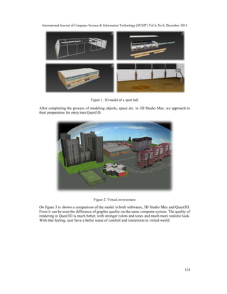 The paper discusses the generation of a 3D model in a virtual reality environment using Quest3D, comparing rendering performance and user interactions between different computer systems. It emphasizes the importance of system specifications, such as GPU capabilities and CPU speed, for real-time rendering quality and speed. The findings highlight a significant difference in visual quality and performance, demonstrating that effective interaction and rendering are crucial for user experience in virtual environments.