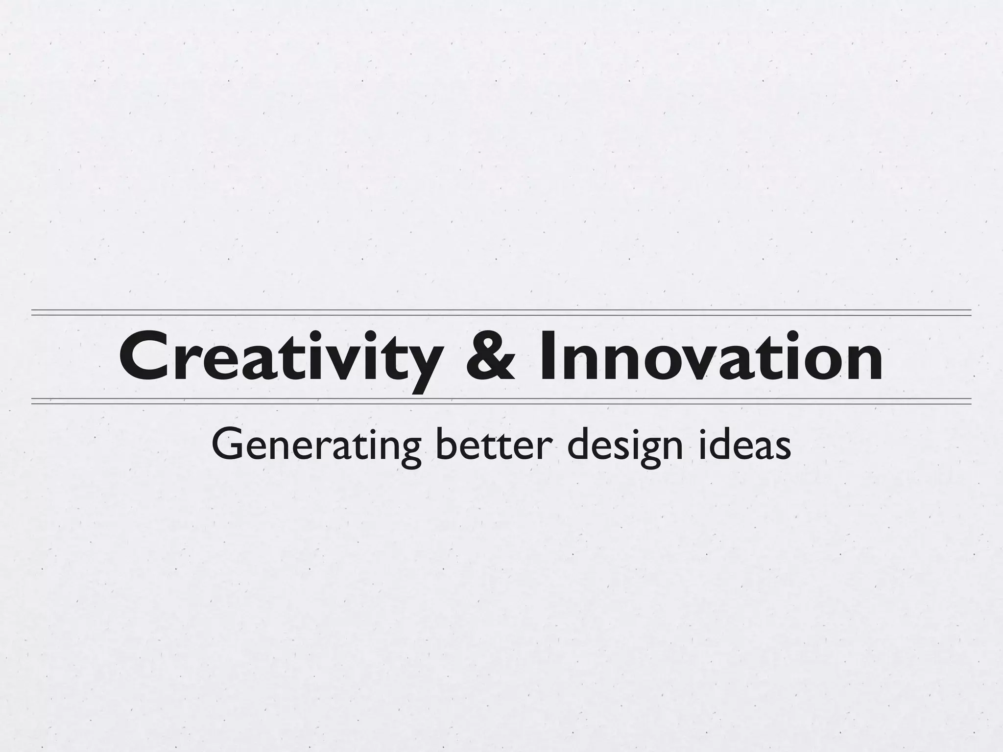 The document discusses various techniques for creativity, innovation, and collaborative design. It describes methods for generating ideas such as brainstorming, sketching, exploring user needs through empathy, and closing the process through voting and evaluation. The goal is to create better ideas through exploration of alternatives, inclusion of different perspectives, and team engagement.
