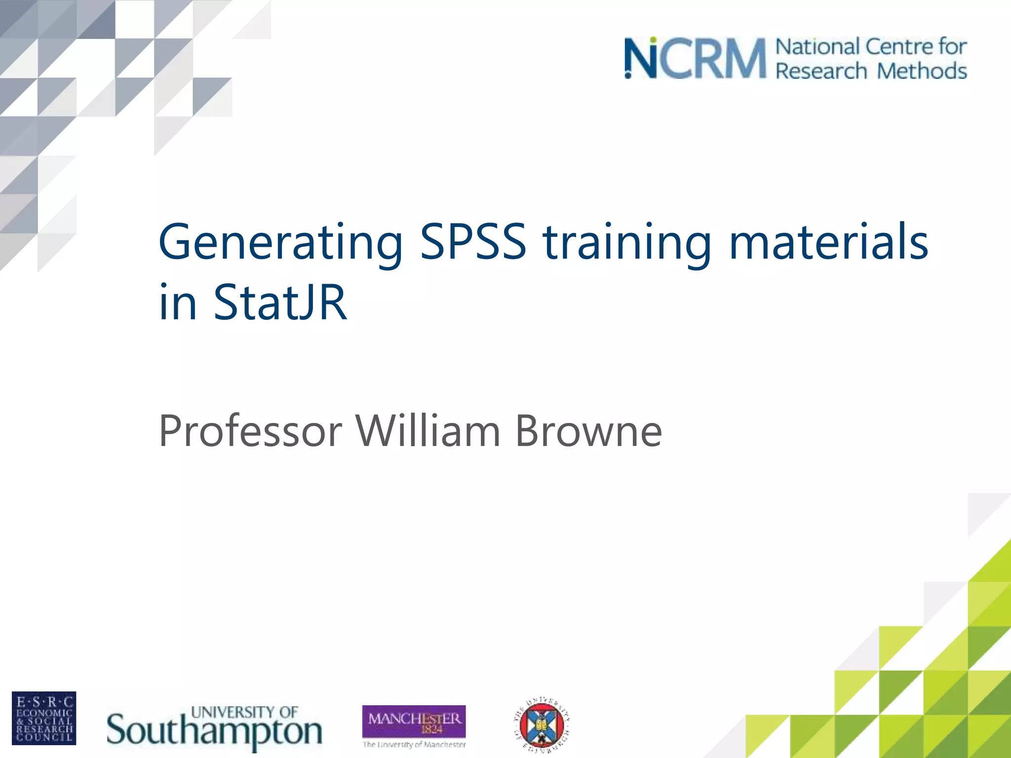 The document discusses the development of SPSS training materials using the StatJR software system, which allows for interoperability with various statistical software. It outlines a project aimed at creating customizable e-books for teaching undergraduate students quantitative methods through practical exercises using SPSS. These materials are designed to guide students in implementing statistical techniques while enabling educators to use their own datasets for tailored learning experiences.