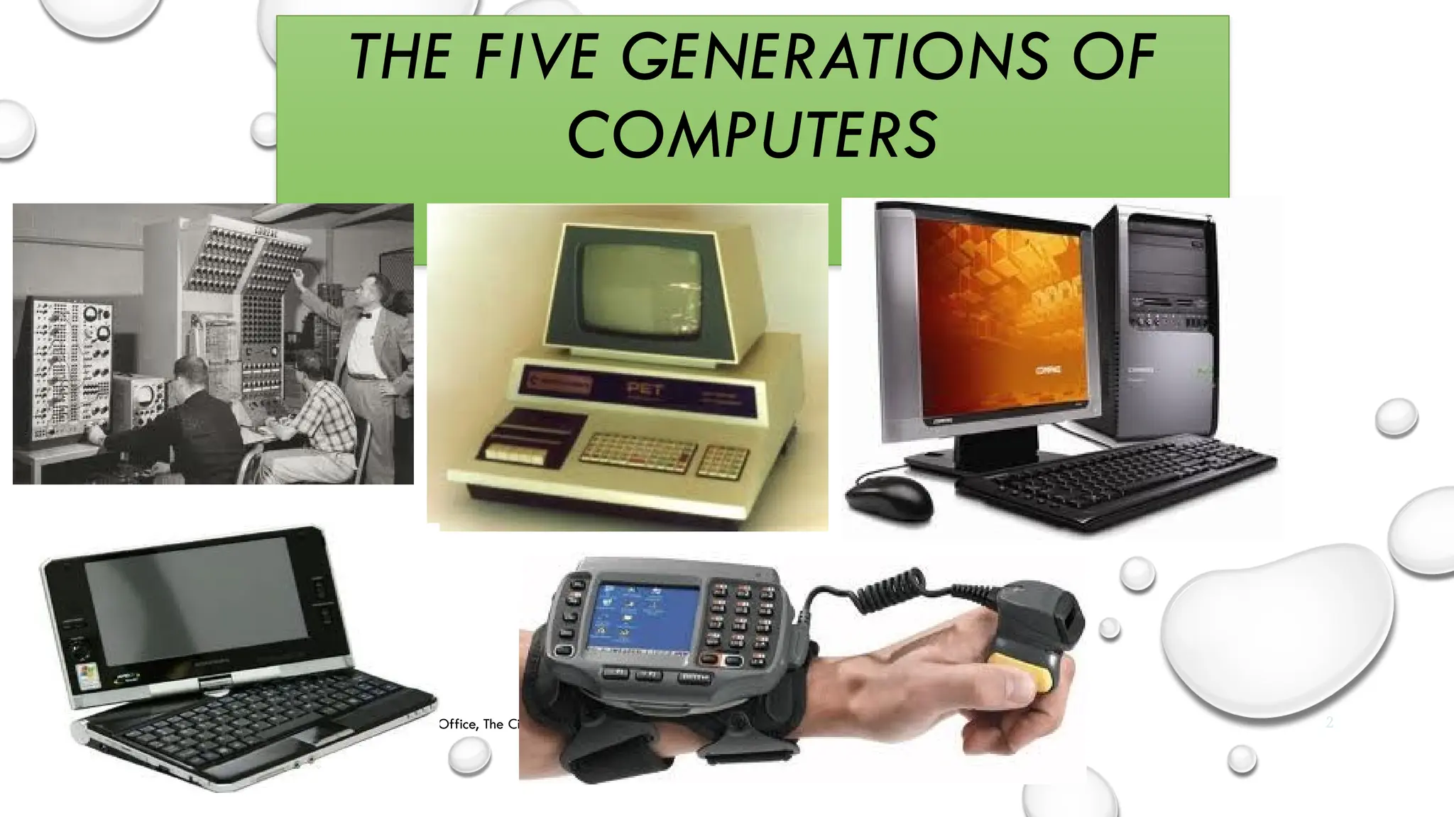 The document outlines the evolution of computers through five generations, starting from the 1940s to the present. Each generation introduced significant technological advancements, such as the transition from vacuum tubes to transistors, the development of integrated circuits, and the emergence of artificial intelligence in modern computing. The aim of fifth-generation computers is to create devices capable of learning and responding to natural language.