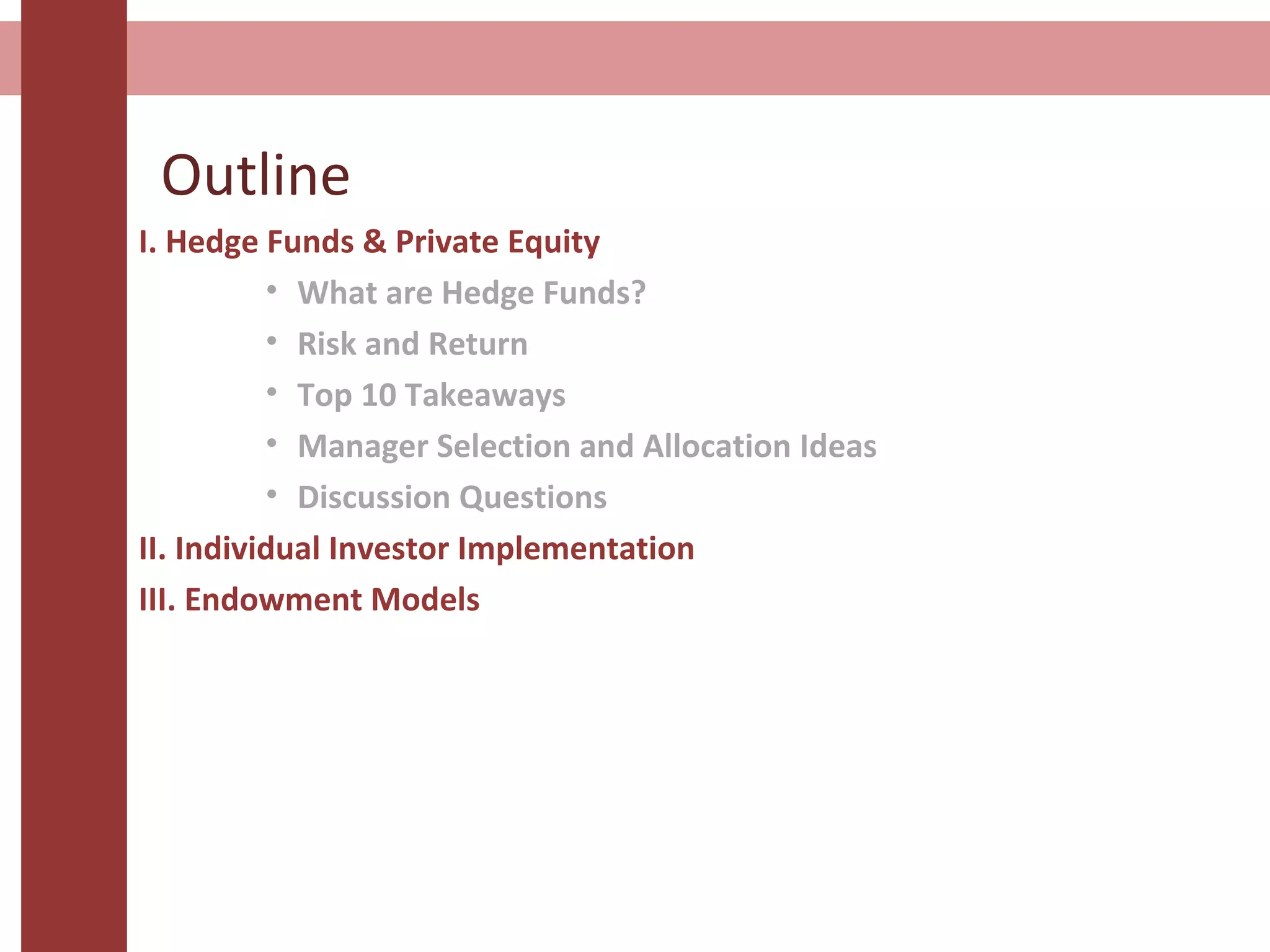 This document provides an overview of wealth management strategies for affluent investors, focusing on hedge funds and private equity. It discusses what hedge funds and private equity are, common characteristics and strategies, manager incentive structures, historical returns, and implementation considerations. It also reviews endowment models, summarizing historical investment returns and asset allocations of Yale and Harvard University endowments. Finally, it compares different methods of investing and five key considerations for selecting investment types - management, taxation, costs, control, and liquidity.