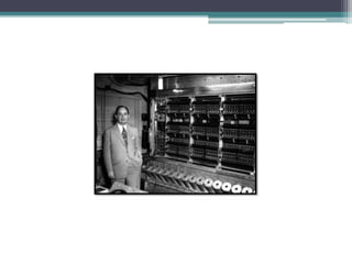 The document discusses the five generations of computers from the 1940s to present. The first generation used vacuum tubes and punched cards, the second used transistors, the third used integrated circuits, the fourth used microprocessors and were smaller and portable, and the fifth generation combines hardware and software and uses technologies like artificial intelligence, quantum computing, and parallel processing. Each generation saw improvements in size, speed, cost, and capabilities over previous generations as new technologies were developed and adopted.