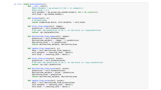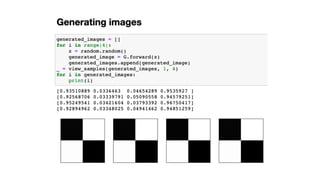 This document provides a friendly introduction to generative adversarial networks (GANs). It explains the general idea of GANs which involve a discriminator and generator playing a game, with the goal of the generator being to generate fake images that cannot be distinguished from real images by the discriminator. The document then walks through building the simplest GAN with a 1-layer neural network discriminator and generator. It explains how to train the GAN by having the discriminator and generator update through backpropagation to minimize their loss functions. Code examples are provided to demonstrate how to implement the GAN.