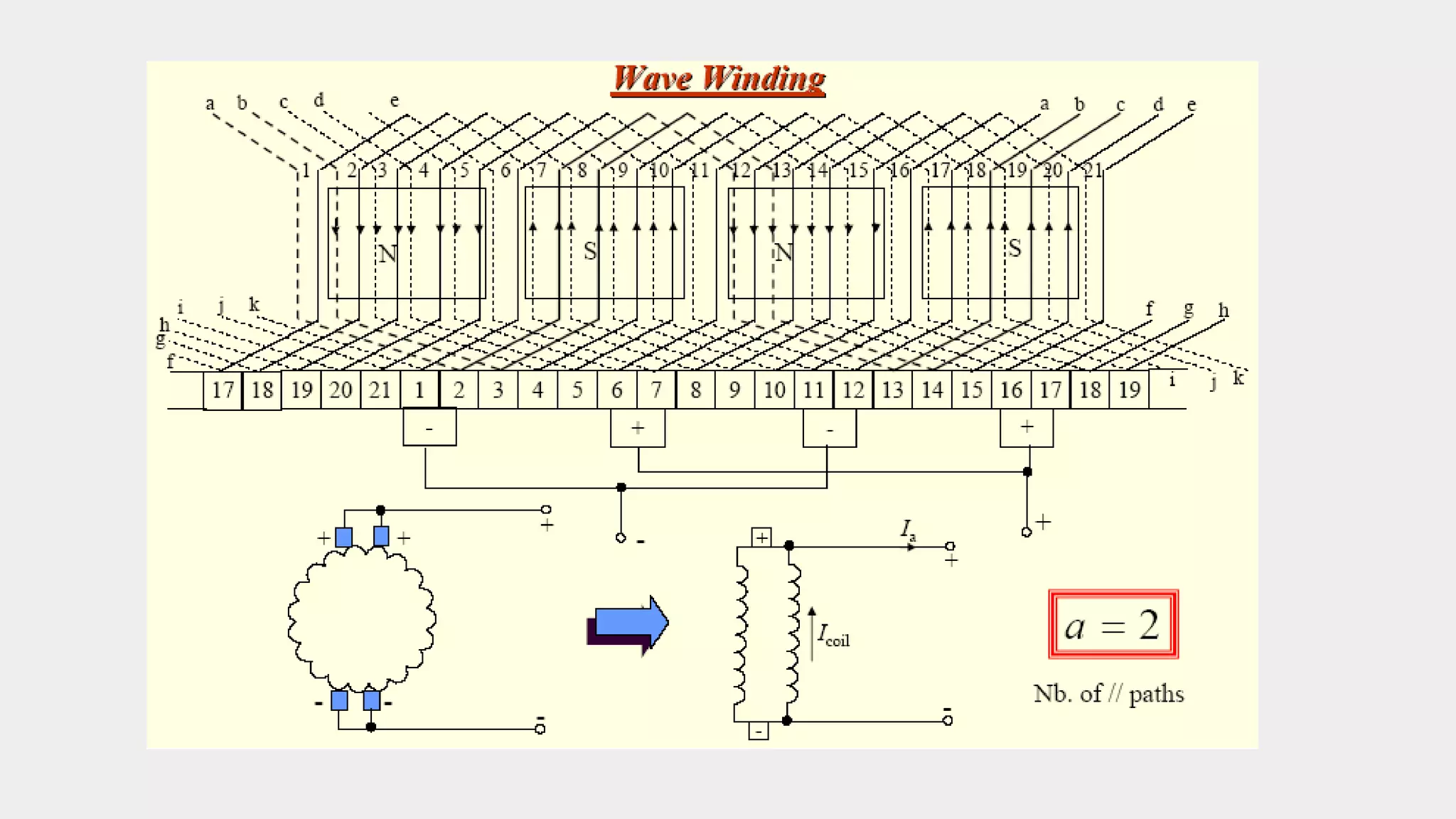 3) As the armature rotates, the commutator and brushes are used to periodically reverse the direction of current in the external circuit, thereby producing direct current. Losses in the generator arise from copper, iron, and mechanical components