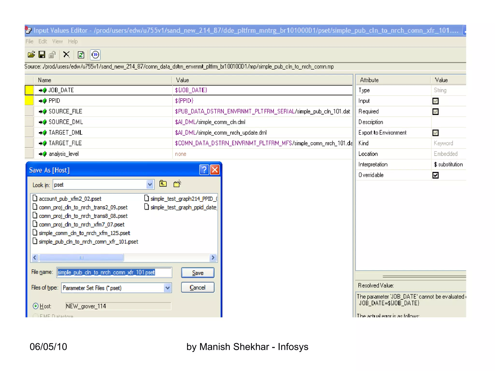 The document outlines the creation and management of parameter sets (psets) in Ab Initio for generic graphs, including how to define parameters, save psets, and achieve data lineage. It details the importance of setting the 'analysis_level' parameter and handling concurrent jobs through unique job identifiers. Additionally, it emphasizes capturing accurate job statistics in the Enterprise Metadata Environment (EME) associated with specific pset instances.