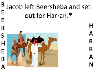 1) Jacob had a dream of a stairway to heaven with angels ascending and descending, where God promised him the land and numerous descendants.