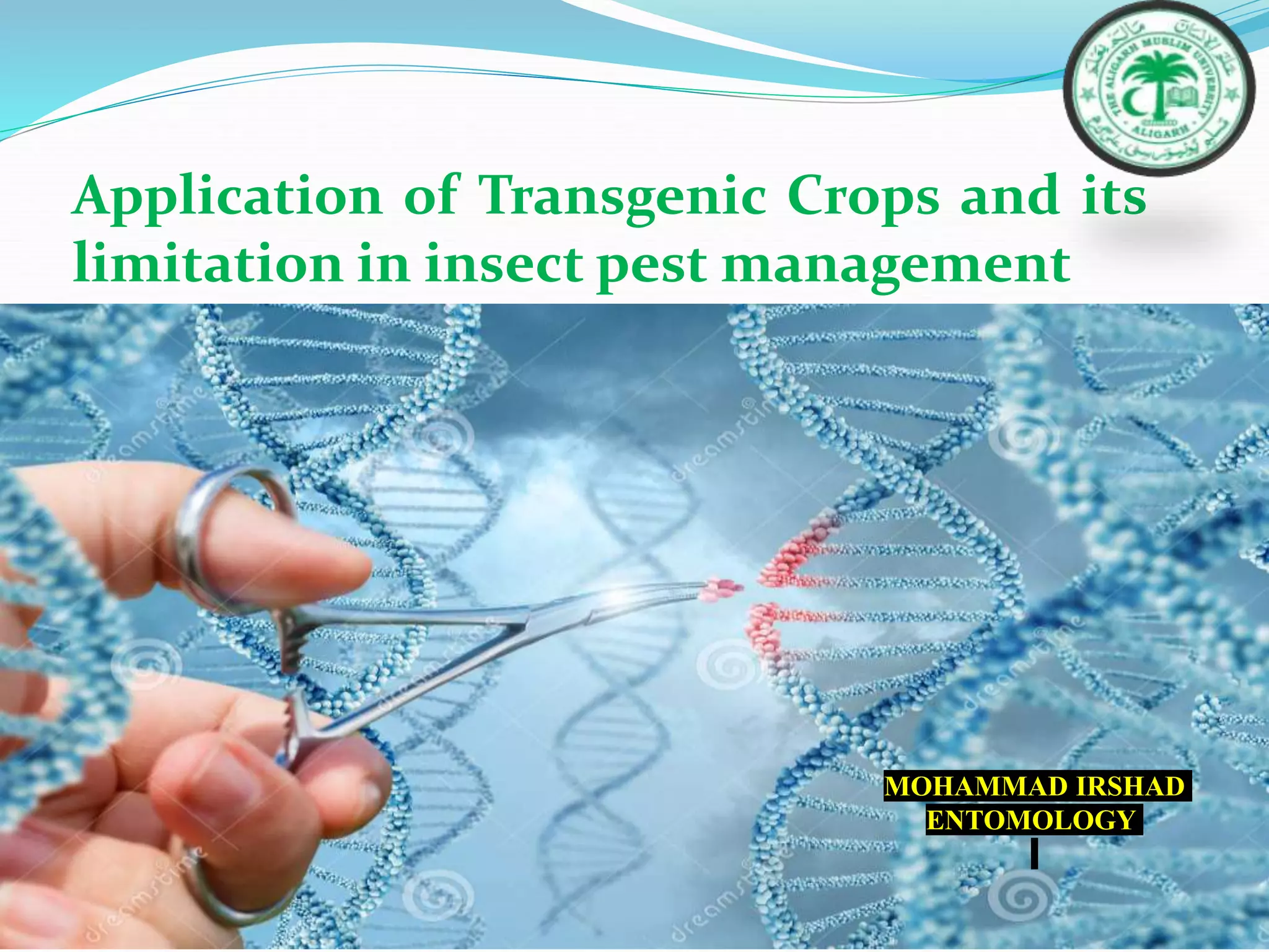The document discusses transgenic crops, highlighting their benefits such as increased yield and pest resistance, along with their history and gene transfer methods. It also addresses the advantages and limitations of biotechnology, including environmental and socio-economic concerns. The conclusion emphasizes the potential of genetically modified crops to meet food demands while reducing pesticide reliance and the need for collaborative efforts in safe genetic modifications.