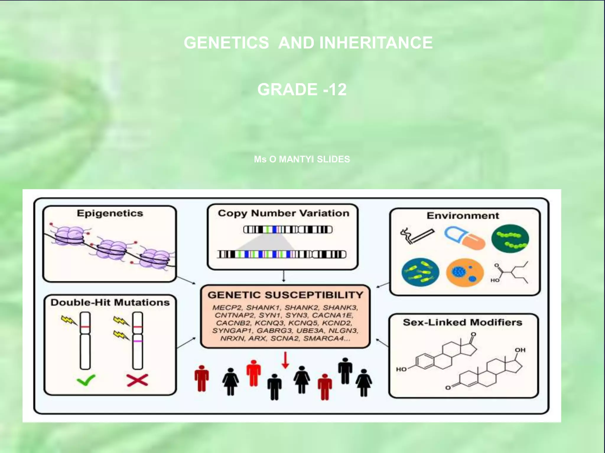This document provides information about genetics and inheritance from a grade 12 lesson. It discusses: