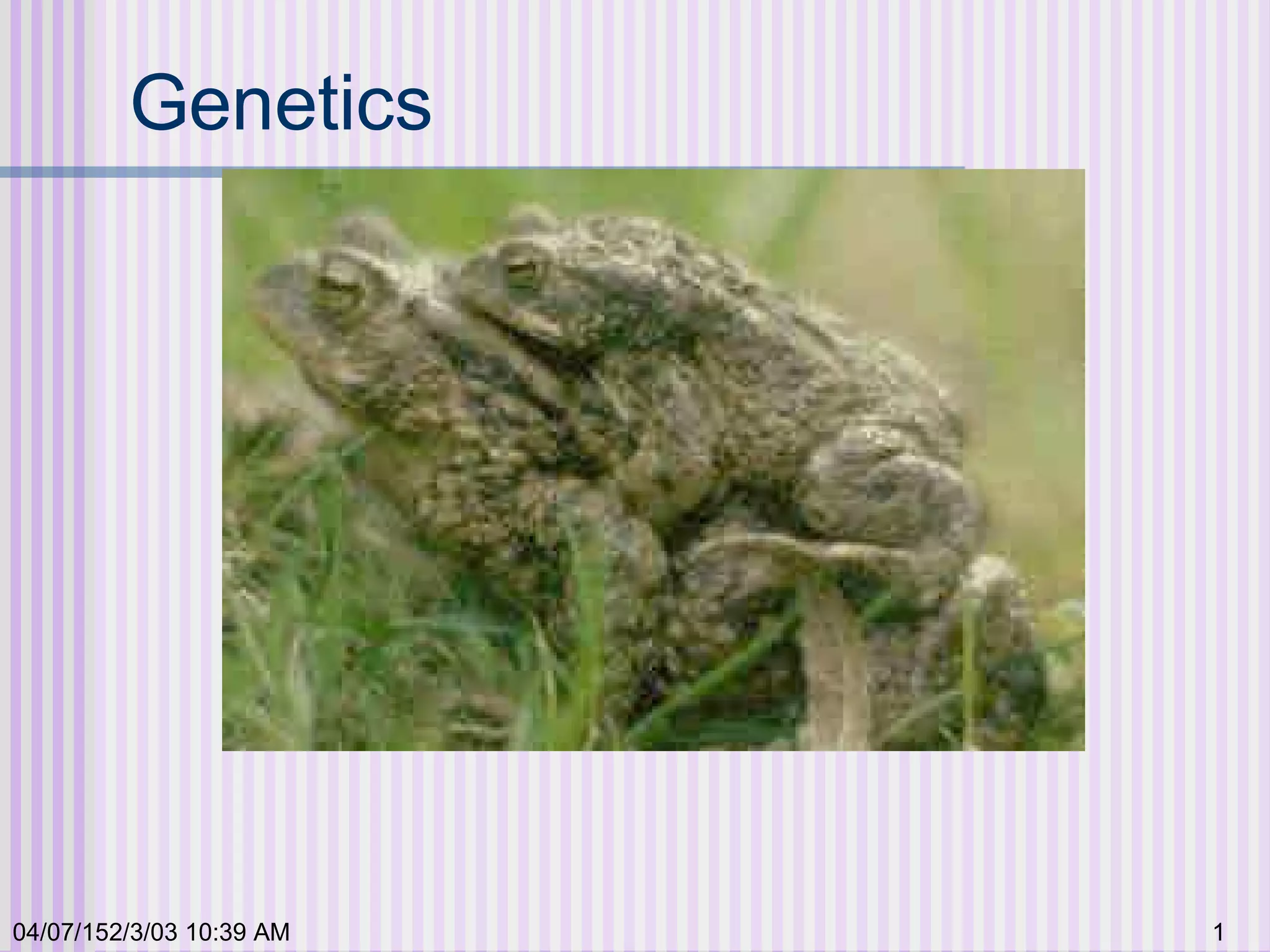 Gregor Mendel conducted experiments with garden peas in the 1850s to study inheritance of traits. He found that traits are passed from parents to offspring in predictable ratios. Some key findings were that traits are controlled by discrete units (now known as genes), alleles can be dominant or recessive, and genes assort independently during reproduction. Mendel's work established the foundations of classical genetics but was not widely recognized until the early 1900s.