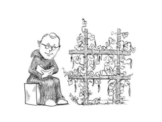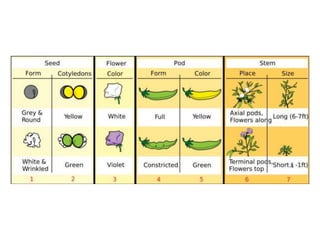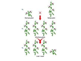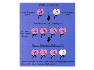 Gregor Mendel conducted experiments with pea plants in the 1850s and 1860s to study inheritance of traits. He observed that traits were inherited in predictable patterns, with dominant traits masking recessive traits in the offspring of crosses. His work established the fundamental laws of genetics, including segregation of alleles, independent assortment of traits, and dominance. Mendel's work laid the foundation for the field of molecular genetics and our modern understanding of genes and inheritance.