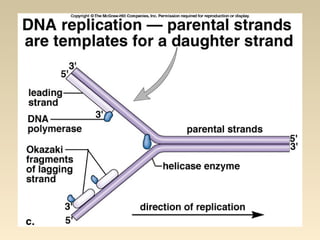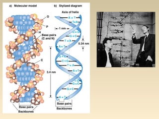 Dokumen tersebut memberikan informasi mengenai staf pengajar bagian biokimia di suatu perguruan tinggi kedokteran, serta menjelaskan penemuan struktur DNA oleh Watson dan Crick tahun 1953. Dokumen ini juga menjelaskan tentang ekspresi gen, replikasi DNA, transkripsi, translasi, dan kode genetik.