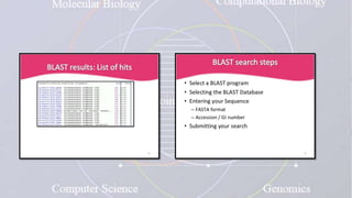 This document provides an overview of comparative genomics. It begins by defining genomics and its subfields, including comparative genomics which compares complete genome sequences across species. Tools for comparative genomics like BLAST and synteny are discussed. The history of comparative genomics from early virus comparisons to current eukaryote analyses is summarized. Methods for comparative analysis include examining genome structure, coding regions, protein content, and non-coding regions. General databases useful for comparative genomics are also listed.