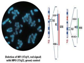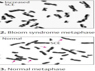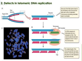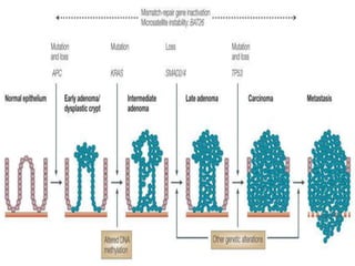 Genomic instability plays an important role in cancer development by accelerating the accumulation of genetic changes in cancer cells. Several mechanisms can cause genomic instability, including defects in DNA repair pathways like base excision repair, mismatch repair, and double-strand break repair. Loss of function in DNA repair genes like MLH1 and MSH2 can lead to hypermutation and microsatellite instability in colorectal cancer. Other causes include problems with DNA replication, chromosome segregation, and telomere dysfunction. Genetic disorders involving genomic instability include ataxia-telangiectasia, neurofibromatosis type 1, Bloom syndrome, and ring chromosomes.